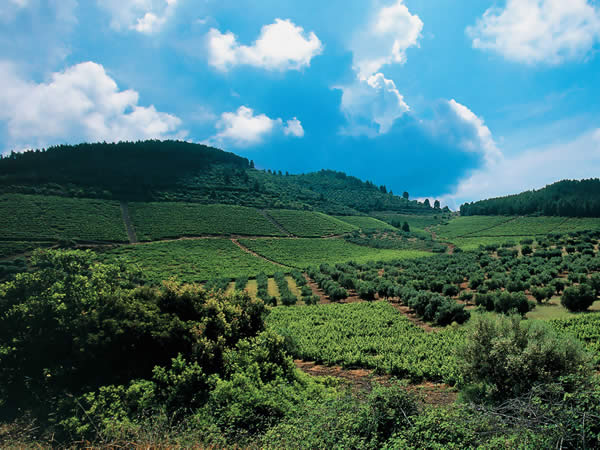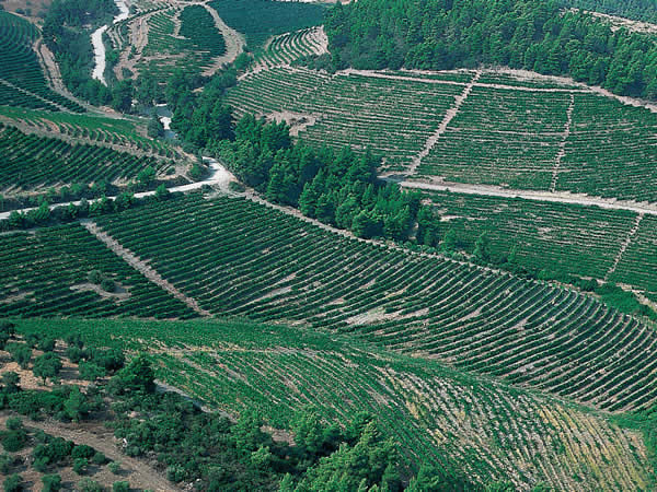 Auf den bepflanzten Hängen erstreckt sich auf 4500 Hektar treppenförmig der größte biologische Weinberg Griechenlands, der sogar einer der größten Europas ist. Die Gestaltung des Weinbergs wurde von Agrawissenschaftlern im Einklang mit der Natur gefertigt und gilt bis heute als beispielhaft. Dank bester klimatischer Bedingungen können die Weinstöcke mit biologischen bzw. natürlichen Mitteln behandelt werden und erhalten damit ihren reinen Bio-Wert.