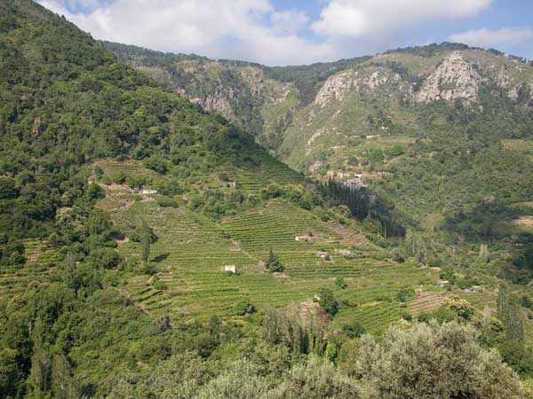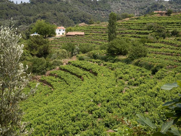 Die Weinberge auf Samos sind einmalig auf der ganzen Welt. Auf 16.000 Hektar sind die Rebstöcke nicht wie üblich in Spalierform, sondern in Form einer niedrigen Mauer angebaut. Auf der Insel dominiert die aromareiche Rebsorte Muscat Blanc (97%), aus der die qualitativ hochwertigen Likörweine produziert werden für die Samos weltweit bekannt ist. Sie umschließt wie keine andere Sorte die intensivsten Aromen der Traube und gibt den Duft des Muscats an die Weine weiter. Neben den Likörweinen werden auch hervorragende trockene Weißweine gekeltert, die durch ihr besonderes Aroma überzeugen.