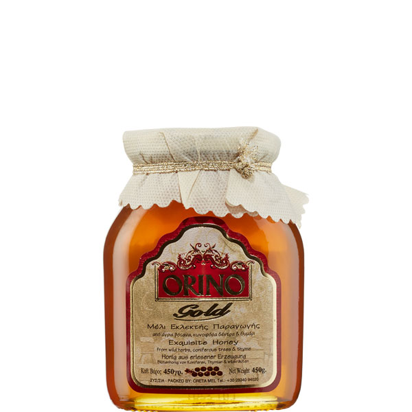 Honig Orino Nektar Gold: Exzellenter Blütenhonig aus Thymian-, Wild- und Pinienblüten. Er ist von goldener, durchscheinender Farbe, hat ein intensives Aroma und einen angenehm zarten Geschmack. Der Honig kommt aus den Hochlagen der kretischen Bergregionen und ist von bemerkenswerter Qualität. Trocken und vor Wärme geschützt lagern.