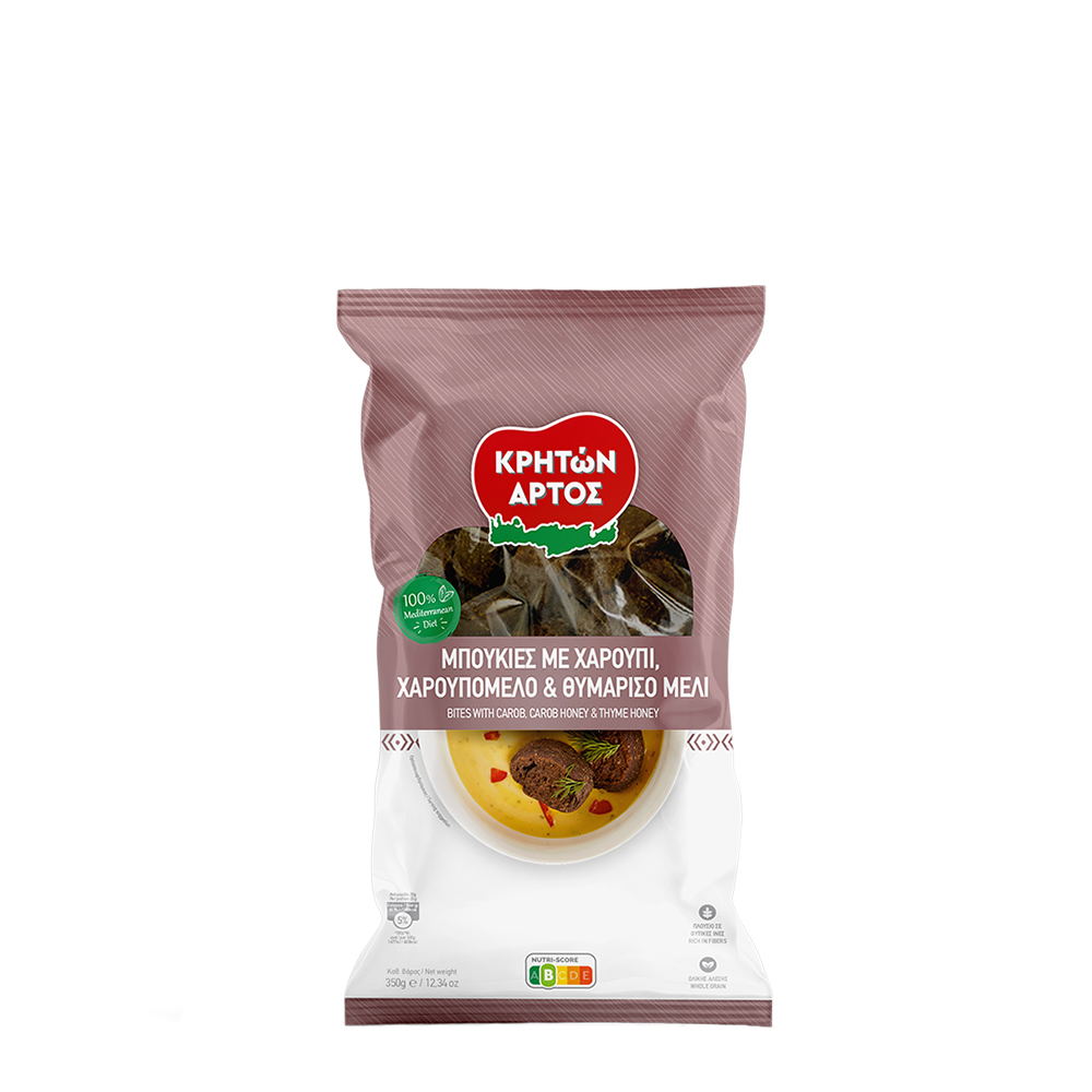 Zutaten: Weizenmehl, Johannisbrotmehl, Olivenkernöl, Vollkornmehl, Johannisbrothonig, Thymianhonig, Kakao, Hefe, Roggensauerteig, Wasser und Salz